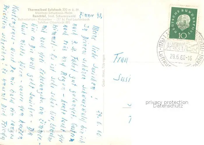 Bad_Sulzbach Thermalbad Sulzbach Muentner Schumann Heim im Renchtal Schwarzwald Bad_Sulzbach postalisch gelaufen 1960 Erhaltung siehe scans [FriedD77] Frierer