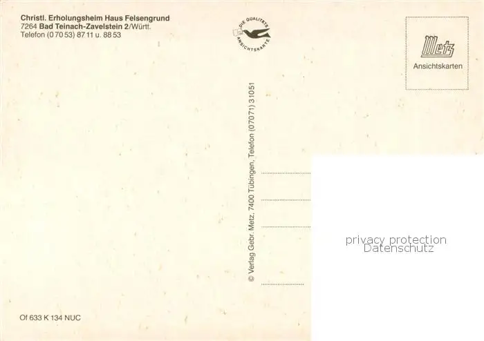 Bad_Teinach-Zavelstein Christl Erholungsheim Haus Felsengrund Bad_Teinach-Zavelstein postalisch nicht gelaufen nach 1965 Erhaltung siehe scans [WerneD78] WernPID7