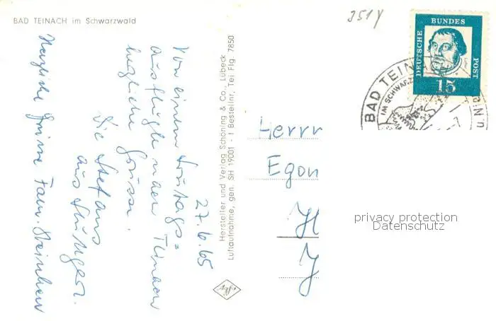 Bad_Teinach-Zavelstein Gesamtansicht Bad_Teinach-Zavelstein postalisch gelaufen 1965 Erhaltung siehe scans [LiesaD40] LiesID40