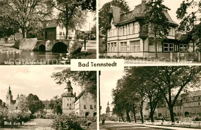 AK / Ansichtskarte Bad_Tennstedt Motiv am Glunkerbach Kurhaus Rathaus Anlagen Bad_Tennstedt