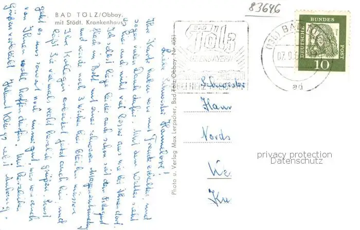 Bad_Toelz Fliegeraufnahme mit Staedt Krankenhaus Bad_Toelz postalisch gelaufen 1962 Erhaltung siehe scans [WerneD78] WernPID7