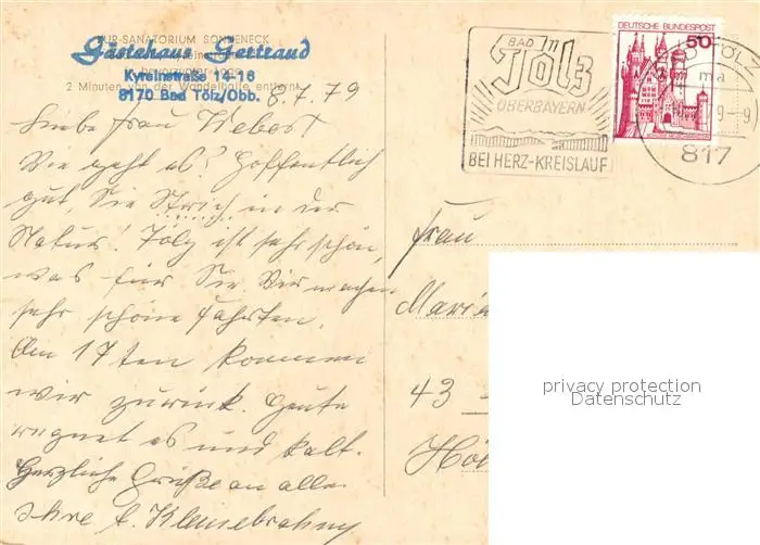 Bad_Toelz Kategorie Alte Ansichtskarten Postkarten bx62859 Bad_Toelz Kursanatorium Sonneneck Bad_Toelz postalisch gelaufen 1979 Erhaltung siehe scans [KathaD81]