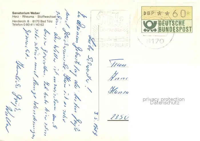 Bad_Toelz Sanatorium Weber Bad_Toelz postalisch gelaufen 1989 Erhaltung siehe scans [FriedD77] Frierer