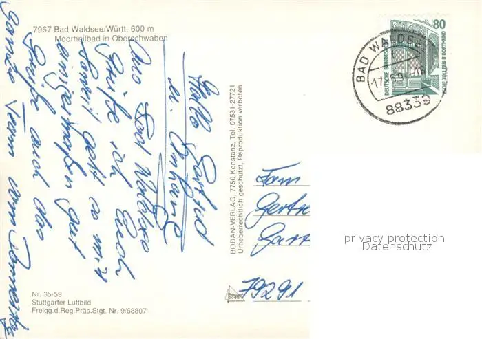 Bad_Waldsee Fliegeraufnahme Kirche Bad_Waldsee postalisch gelaufen 1994 Erhaltung siehe scans [WerneD78] WernPID7