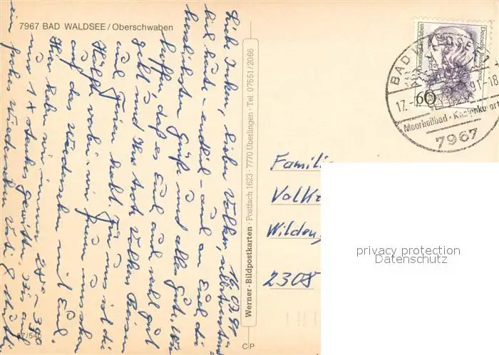 Bad_Waldsee Panorama Bad_Waldsee postalisch gelaufen 1991 Erhaltung siehe scans [KathaD81] Kathoren