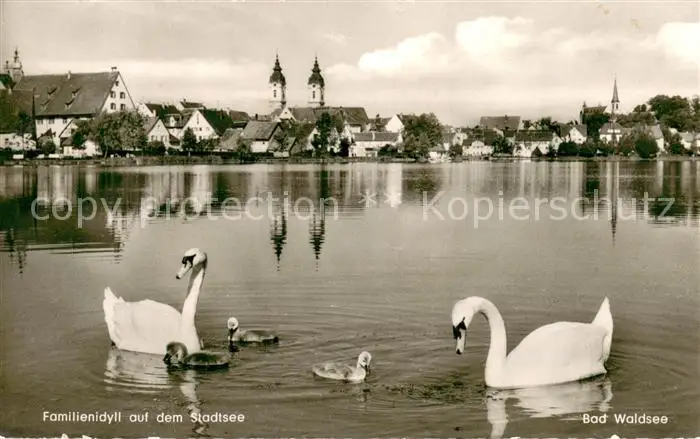 AK / Ansichtskarte Bad_Waldsee Schwanenfamilie auf dem Stadtsee Bad_Waldsee