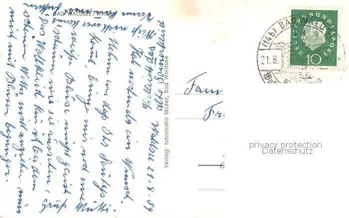 Bad_Waldsee Schwanenfamilie auf dem Stadtsee Bad_Waldsee postalisch gelaufen 1959 Erhaltung siehe scans [WerneD78] WernPID7
