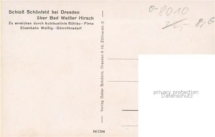 Bad_Weisser_Hirsch Schloss Schoenfeld Schlosseingang Bad_Weisser_Hirsch postalisch nicht gelaufen 1921-1965 Erhaltung siehe scans [WerneD78] WernPID7