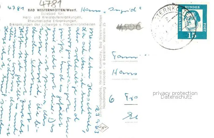 Bad_Westernkotten Saline Ehrenmal Kurhaus Soleturm Wandelhalle Alte Fachwerkhaeuser Pension Markoni Zehnthof Kurmittelhaus Schloss Schwarzengraben Bad_Westernkotten postalisch gelaufen 1963 Erhaltung siehe scans [WerneD78] WernPID7