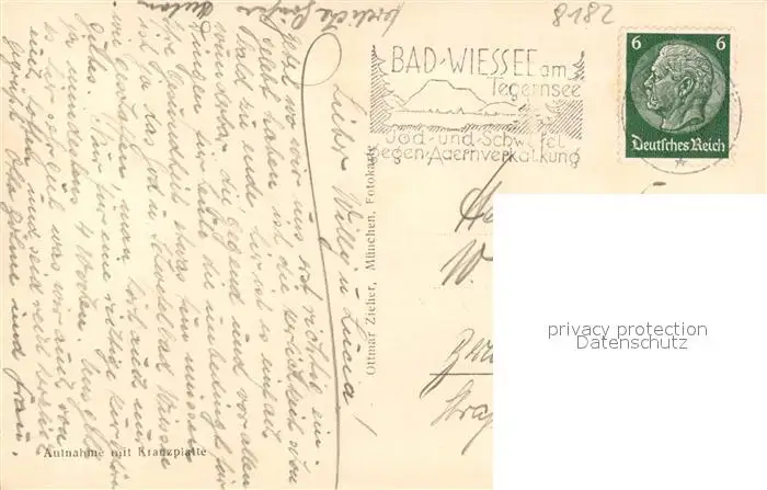 Bad_Wiessee Holzbrunnen Blick zur Kirche Bad_Wiessee postalisch gelaufen 1921-1965 Erhaltung siehe scans [FriedD77] Frierer