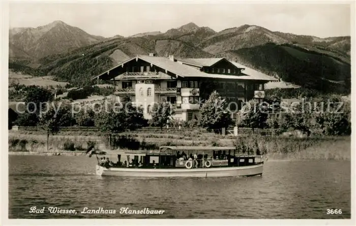 AK / Ansichtskarte Bad_Wiessee Landhaus Hanselbauer Fahrtgastschiff Ansicht vom Tegernsee aus Bad_Wiessee