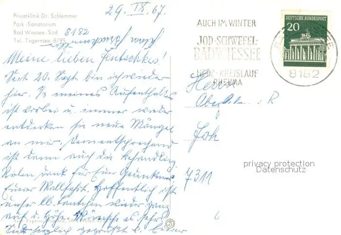 Bad_Wiessee Privatklinik Dr. Schlemmer Park Sanatorium Bad_Wiessee postalisch gelaufen 1967 Erhaltung siehe scans [FriedD77] Frierer