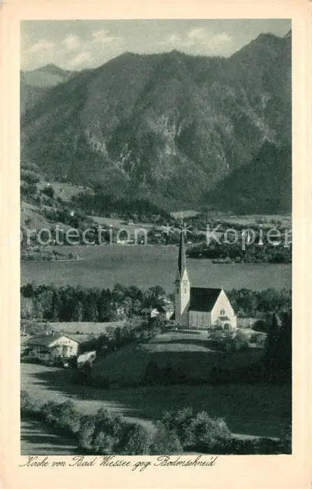 Bad_Wiessee mit Kirche und Bodenschneid Bad_Wiessee postalisch nicht gelaufen 1921-1965 Erhaltung siehe scans [WerneD78] WernPID7