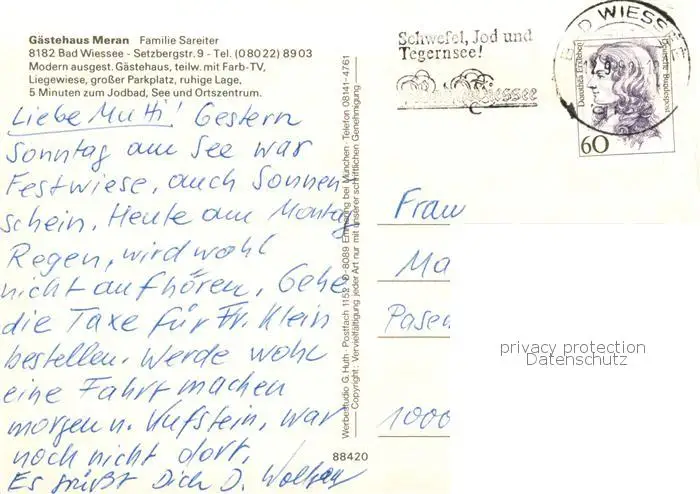 Bad_Wiessee_Tegernsee Gaestehaus Meran Gaststube Bad_Wiessee_Tegernsee postalisch gelaufen nach 1965 Erhaltung siehe scans [WerneD78] WernPID7