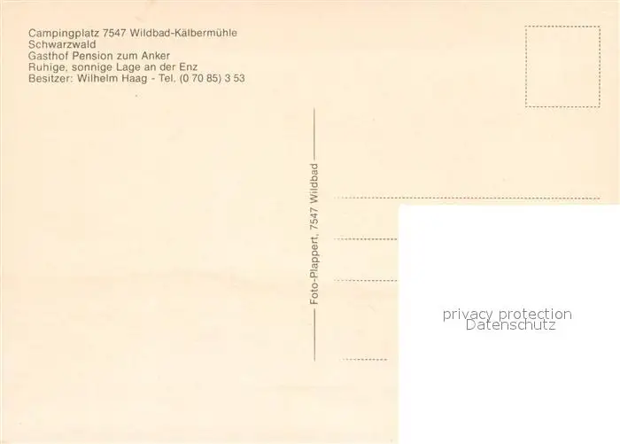 Bad_Wildbad Campingplatz Kaelbermuehle Gasthof Pension zum Anker Pferdekoppel Bad_Wildbad postalisch nicht gelaufen nach 1965 Erhaltung siehe scans [FriedD77] Frierer