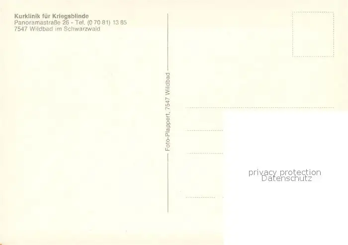 Bad_Wildbad Kurklinik fuer Kriegsblinde im Schwarzwald Bad_Wildbad postalisch nicht gelaufen nach 1965 Erhaltung siehe scans [FriedD77] Frierer