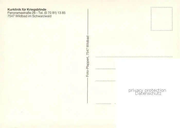 Bad_Wildbad Kurklinik fuer Kriegsblinde im Schwarzwald Bad_Wildbad postalisch nicht gelaufen nach 1965 Erhaltung siehe scans [FriedD77] Frierer