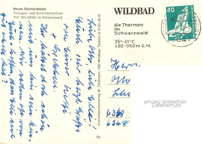 Bad_Wildbad Neues Eberhardsbad Therapiezentrum Kurmittelzentrum Bad_Wildbad postalisch gelaufen 1978 Erhaltung siehe scans [FriedD77] Frierer
