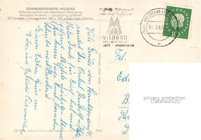 Bad_Wildbad Sommerberghotel Restaurant Terrasse Blick ins Tal Schwarzwald Bad_Wildbad postalisch gelaufen 1960 Erhaltung siehe scans [FriedD77] Frierer
