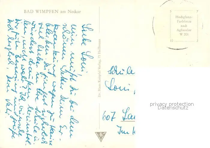 Bad_Wimpfen Fachwerk Neckarpartie Park Turm Bad_Wimpfen postalisch gelaufen nach 1965 Erhaltung siehe scans [WerneD78] WernPID7