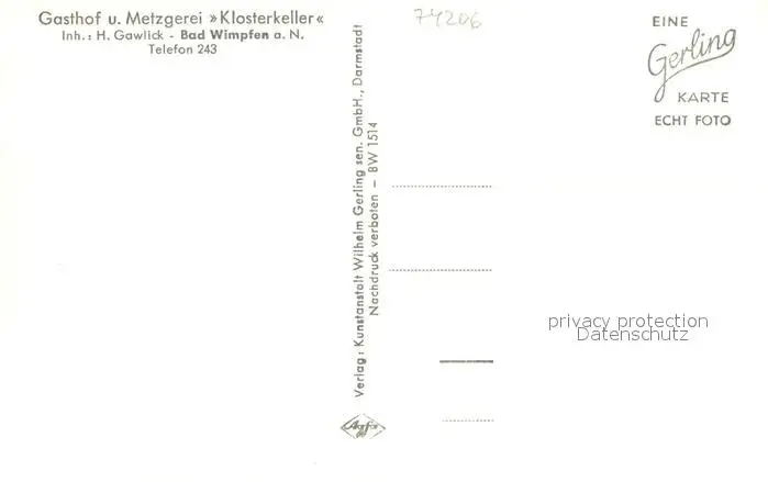 Bad_Wimpfen Gasthof Metzgerei Klosterkeller Brunnen Partie am Neckar Bad_Wimpfen postalisch nicht gelaufen nach 1965 Erhaltung siehe scans [FriedD77] Frierer