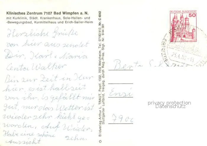 Bad_Wimpfen Klinisches Zentrum Fliegeraufnahme Bad_Wimpfen postalisch gelaufen 1980 Erhaltung siehe scans [WerneD78] WernPID7