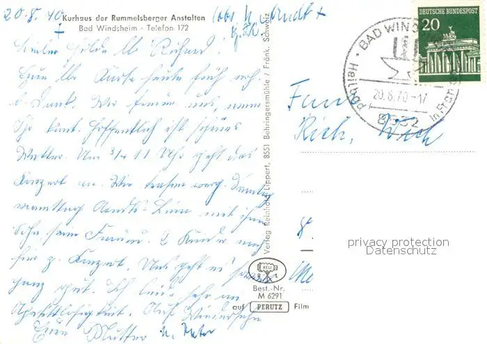 Bad_Windsheim Kurhaus der Rummelsberger Anstalten Ortsmotive Altstadt Fachwerkhaeuser Kirche Brunnen Bad_Windsheim postalisch gelaufen 1970 Erhaltung siehe scans [FriedD77] Frierer