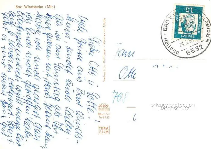 Bad_Windsheim Rathaus Kilianskirche Kurhaus Schoener Brunnen Bad_Windsheim postalisch gelaufen 1965 Erhaltung siehe scans [KathaD81] Kathoren