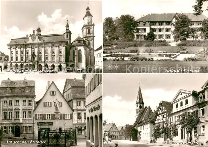AK / Ansichtskarte Bad_Windsheim Rathaus mit Kilianskirche Solbad Kurhaus Am schoenen Brunnen Strassenpartie Bad_Windsheim