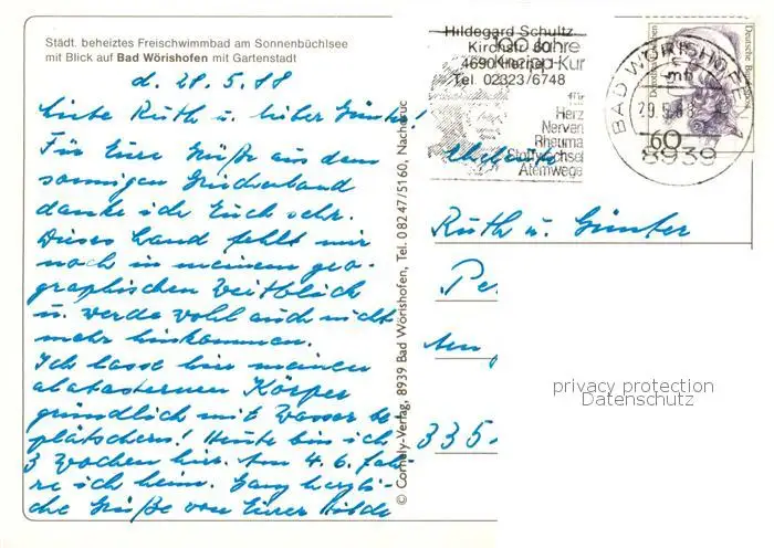 Bad_Woerishofen Fliegeraufnahme mit Schwimmbad Bad_Woerishofen postalisch gelaufen 1988 Erhaltung siehe scans [FriedD77] Frierer