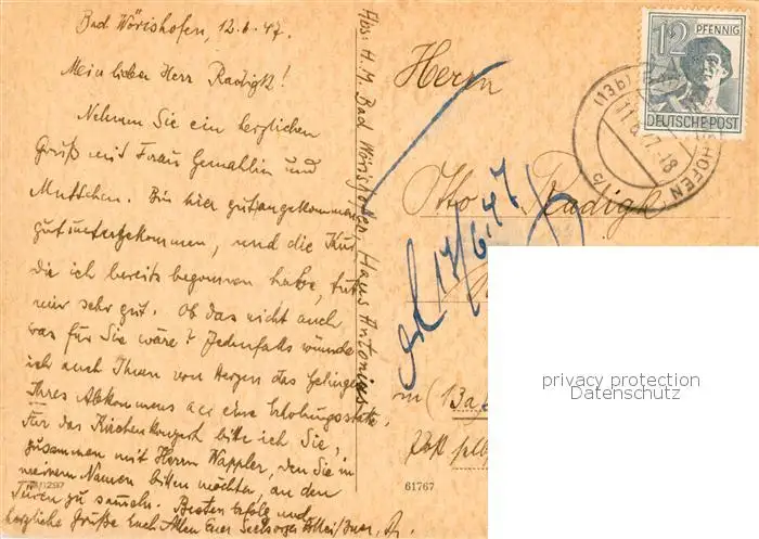 Bad_Woerishofen Hotel Kreuzer Bad_Woerishofen postalisch gelaufen 1947 Erhaltung siehe scans [WerneD78] WernPID7