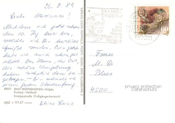 Bad_Woerishofen Kneippstrasse Fussgaengerzone Bad_Woerishofen postalisch gelaufen 1989 Erhaltung siehe scans [WerneD78] WernPID7