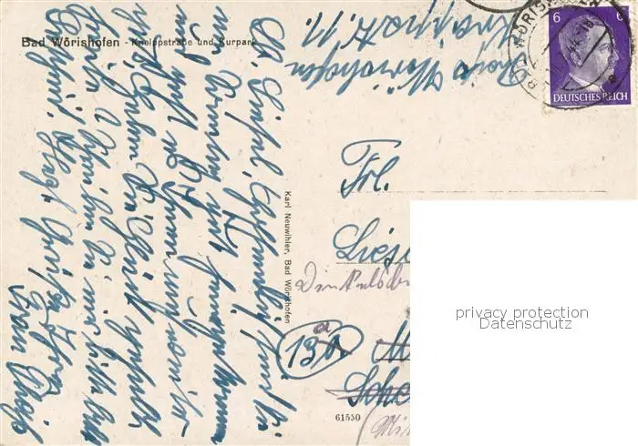 Bad_Woerishofen Kneippstrasse und Kurpark Bad_Woerishofen postalisch gelaufen 1944 Erhaltung siehe scans [FriedD77] Frierer