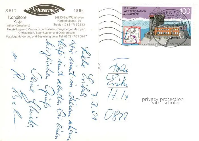 Bad_Woerishofen Konditorei Café Schwermer Terrasse Bad_Woerishofen postalisch gelaufen 2001 Erhaltung siehe scans [FriedD77] Frierer