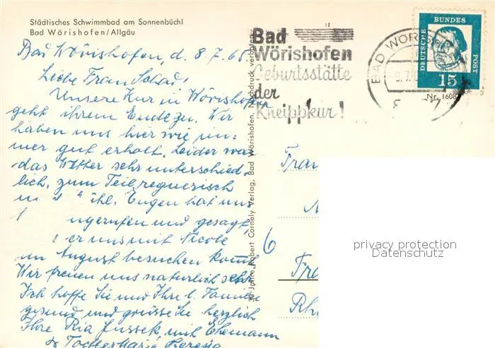 Bad_Woerishofen Schwimmbad am Sonnenbuechl Bad_Woerishofen postalisch gelaufen 1965 Erhaltung siehe scans [FriedD77] Frierer