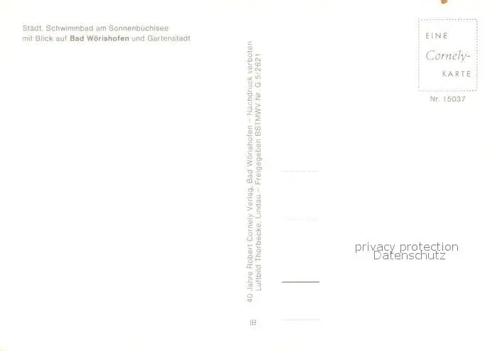 Bad Woerishofen Schwimmbad am Sonnenbuechlsee Gartenstadt Fliegeraufnahme Cornely Karte Nr 15037 Bad Woerishofen postalisch nicht gelaufen nach 1965 Erhaltung siehe scans [FriedD77] Frierer