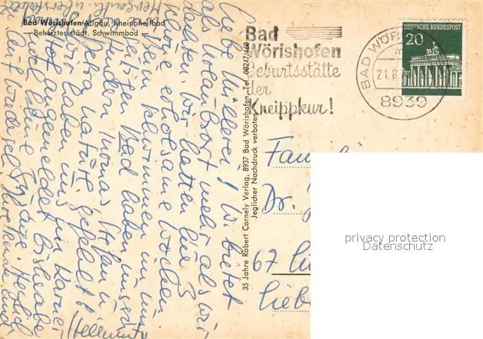 Bad_Woerishofen Staedtisches Schwimmbad Freibad Bad_Woerishofen postalisch gelaufen 1970 Erhaltung siehe scans [FriedD77] Frierer