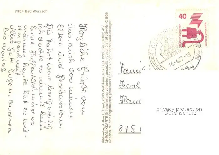 Bad_Wurzach Kurpark Moorfreibad Gottesbergkirche Kurzentrum Schloss Chronik Bad_Wurzach postalisch gelaufen 1977 Erhaltung siehe scans [FriedD77] Frierer