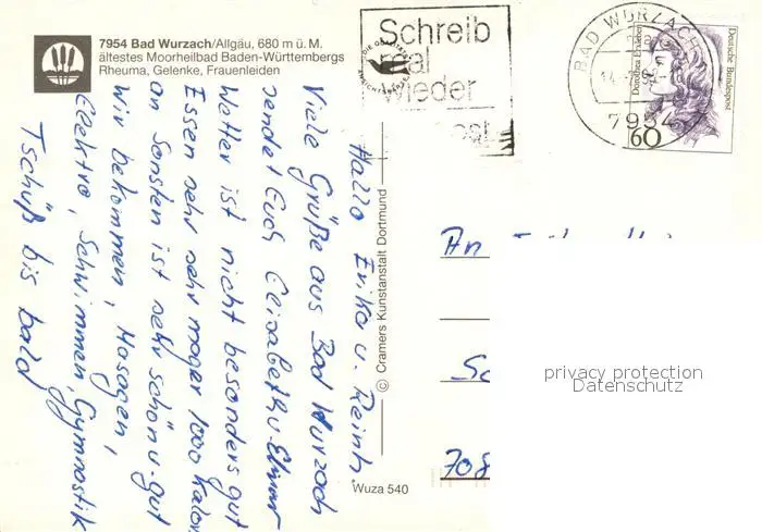 Bad_Wurzach Marien-Brunnen Kurhaus Erikabluete im Ried Kurpark Salvator-Kolleg Bad_Wurzach postalisch gelaufen 1992 Erhaltung siehe scans [LiesaD40] LiesID40