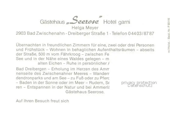 Bad_Zwischenahn Gaestehaus Seerose Hotel garni Aussenansicht Informationen Bad_Zwischenahn postalisch nicht gelaufen nach 1965 Werbekarte (keine Postkarte) Erhaltung siehe scans [LiesaD40] Werbekarte (keine Postkarte) LiesID40