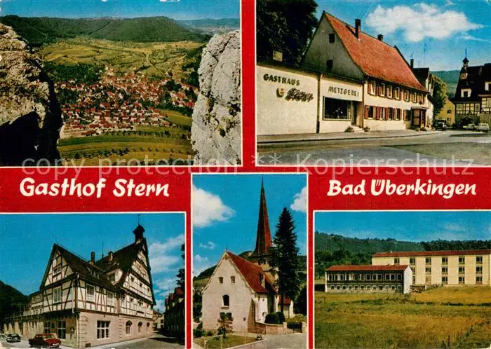 Bad_ueberkingen Panorama Gasthaus Stern Kirche Schule Bad_ueberkingen postalisch gelaufen nach 1965 Erhaltung siehe scans [WerneD78] WernPID7