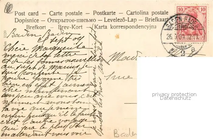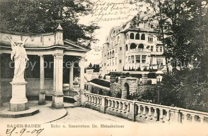 Baden-Baden Echo Sanatorium Heinsheimer Baden-Baden postalisch gelaufen 1909 Erhaltung siehe scans [KathaD81] Kathoren