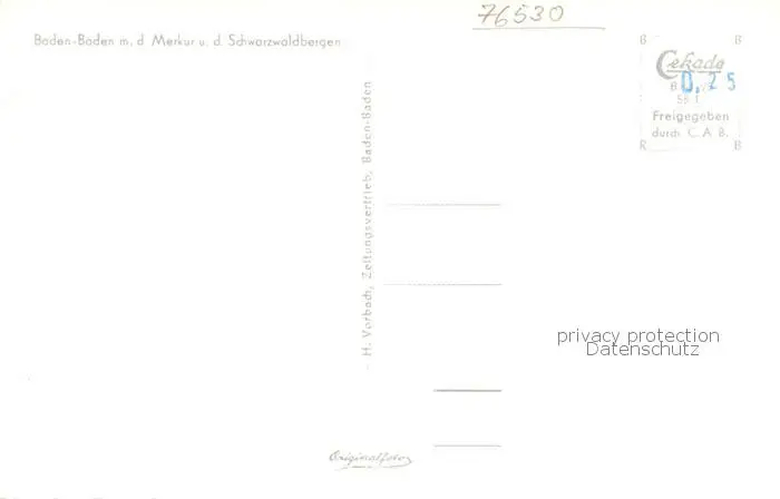 Baden-Baden Fliegeraufnahme mit Merkur Baden-Baden postalisch nicht gelaufen nach 1965 Erhaltung siehe scans [FriedD77] Frierer