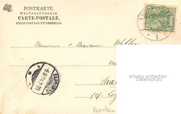 Baden-Baden Panorama Leopoldshoehe Baden-Baden postalisch gelaufen 1904 Erhaltung siehe scans [FriedD77] Frierer