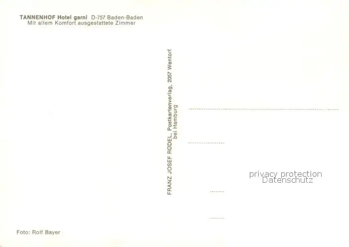 Baden-Baden Tannenhof Hotel garni Baden-Baden postalisch nicht gelaufen nach 1965 Erhaltung siehe scans [FriedD77] Frierer