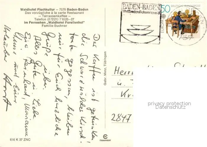Baden-Baden Waldhotel Fischkultur Baden-Baden postalisch gelaufen 1980 Erhaltung siehe scans [WerneD78] WernPID7