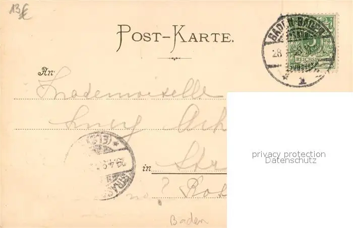 Baden-Baden Waldsee Mondschein Baden-Baden postalisch gelaufen 1898 Erhaltung siehe scans [KathaD81] Kathoren