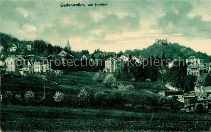Badenweiler Ansicht von Norden mit Burgruine Kurort im Schwarzwald Badenweiler postalisch gelaufen 1907 Erhaltung siehe scans [FriedD77] Frierer
