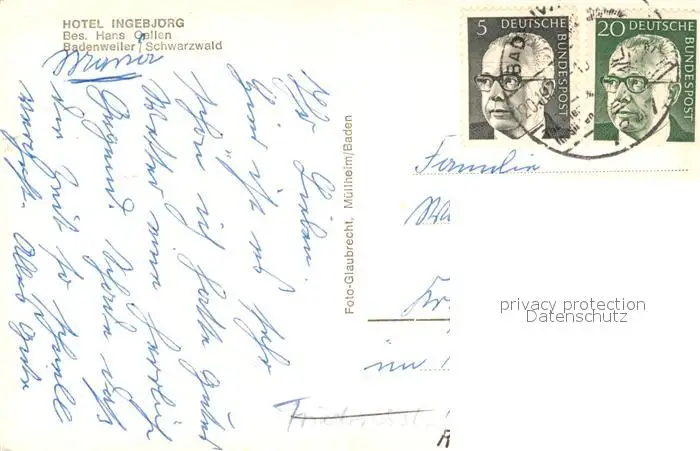 Badenweiler Hotel Ingebjoerg Badenweiler postalisch gelaufen nach 1965 Erhaltung siehe scans [WerneD78] WernPID7