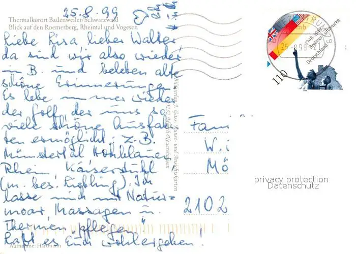 Badenweiler Panorama Kurort im Schwarzwald Roemerberg Rheintal Vogesen Badenweiler postalisch gelaufen 1999 Erhaltung siehe scans [FriedD77] Frierer